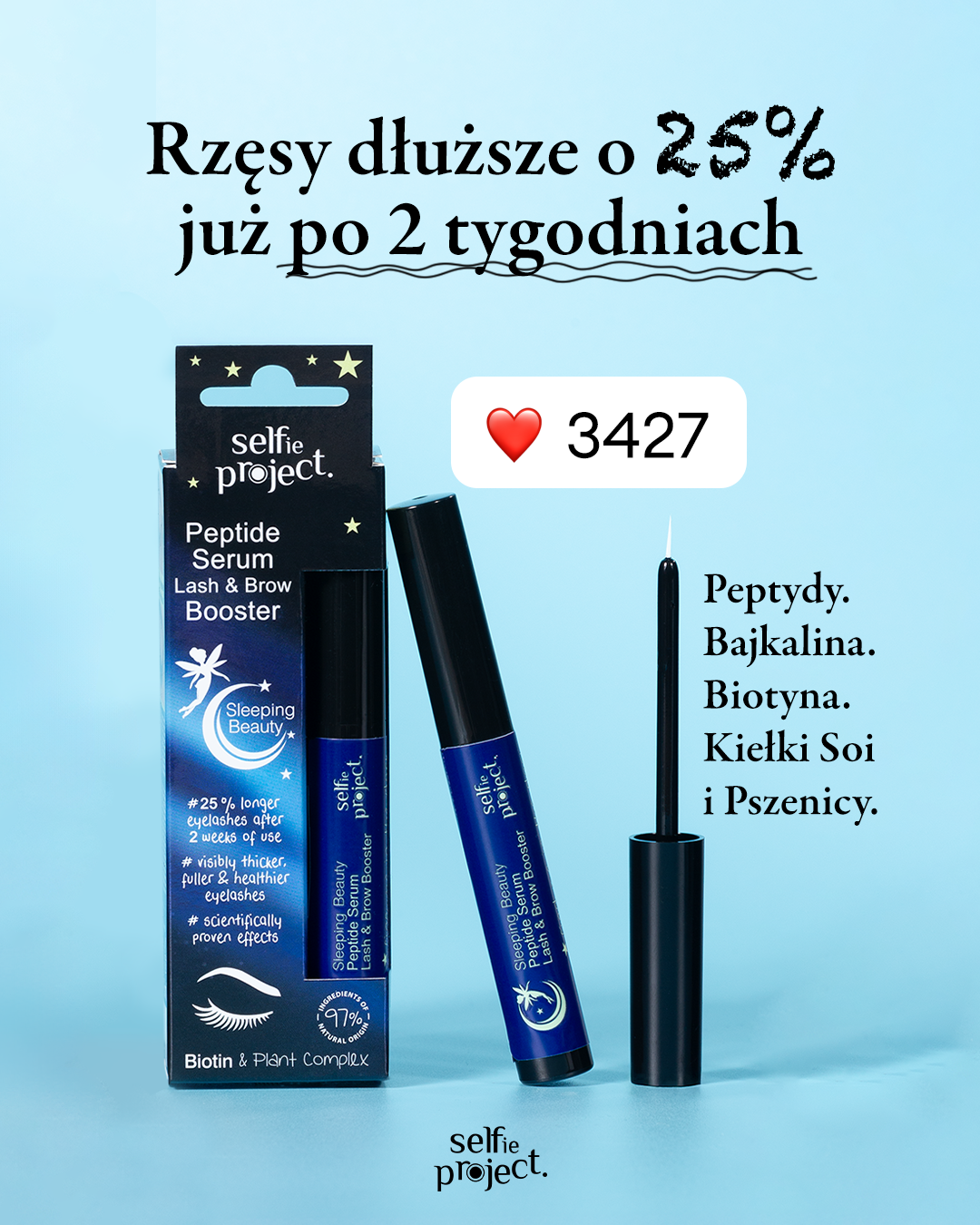 حوّلي مظهر عينيكِ مع سيلفي بروجكت سيروم تعزيز الرموش والحواجب Sleeping Beauty (3 مل) — سيروم موجه غنيّ بالببتيدات لدعم مظهر رموش وحواجب أكثر كثافة وقوة. تجمع تركيبته المتطورة بين ببتيدات نشطة حيويًا، منها Myristoyl Pentapeptide-17، مع البيوتين ومستخلصات نباتية للمساعدة في تحفيز إنتاج الكيراتين، ودعم دورة النمو الطبيعية، وتعزيز كثافة الشعر على خط الرموش ومنطقة الحواجب.