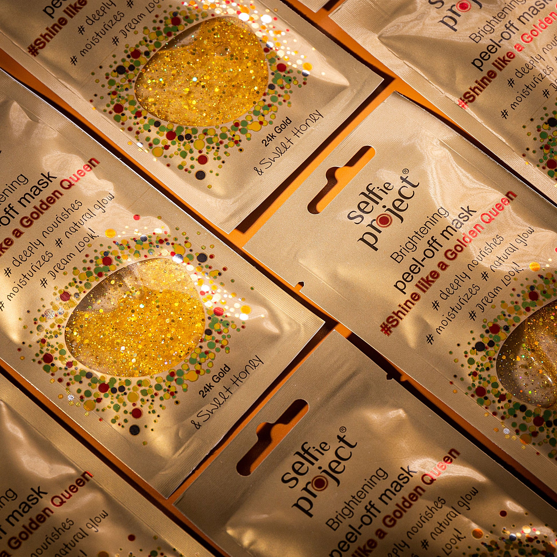 Selfie Project Galaxy Mask #Shine Like a Golden Queen, a brightening peel‑off face mask designed to enhance your skin’s natural glow and smoothness. Enriched with 24K gold particles, this mask helps regenerate and rejuvenate tired skin, promoting a radiant, luminous complexion. Sweet honey extract deeply nourishes and hydrates, improving texture and helping to diminish the appearance of dark spots and uneven tone.